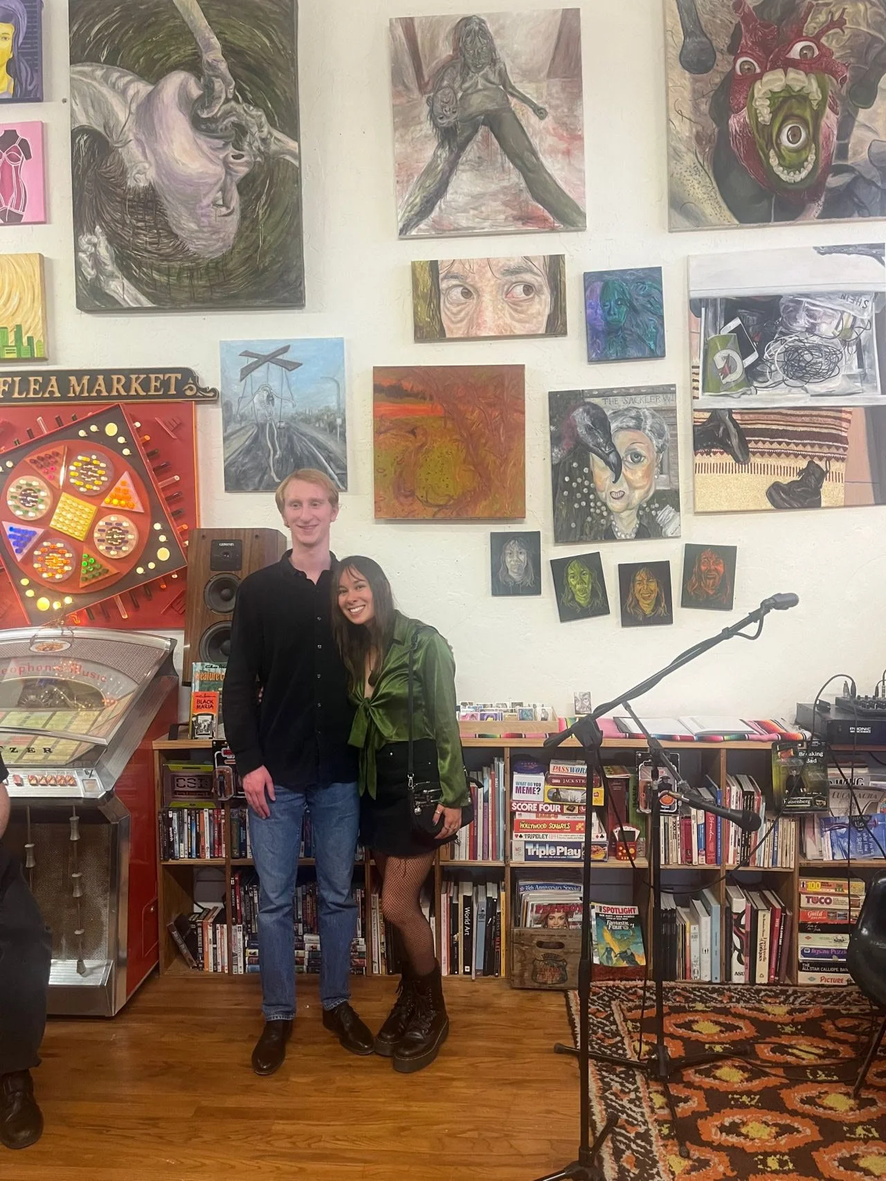 I had the opportunity to fill up a wall with my art at Templeton’s Antiques. It was my first large solo exhibition, and the first time my partner Daniel and I collaborated. Daniel shared several of his songs opening night, performing well as always. This was a very exciting opportunity for us and I’m hopeful that we will be able to join forces again in the future.