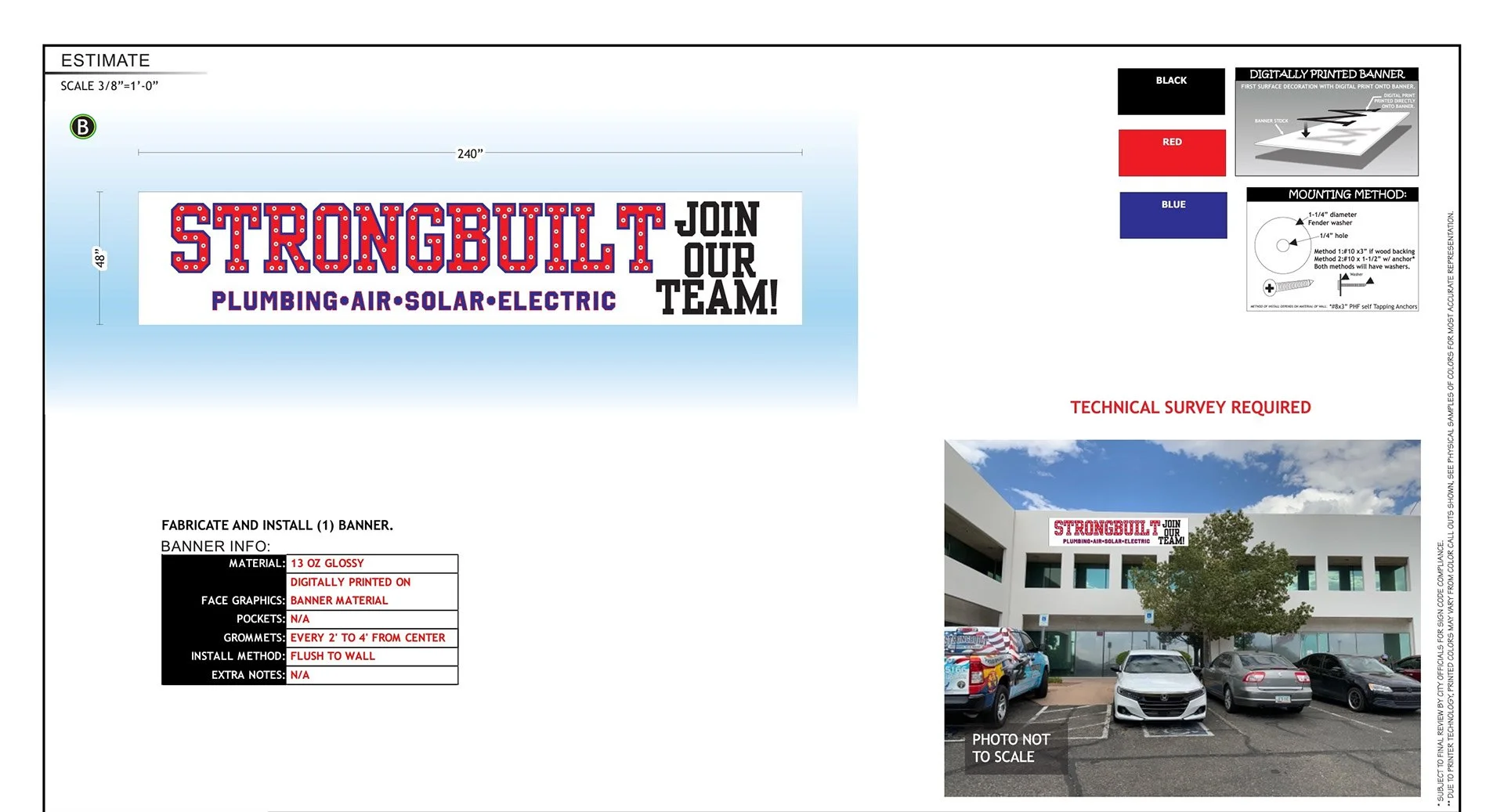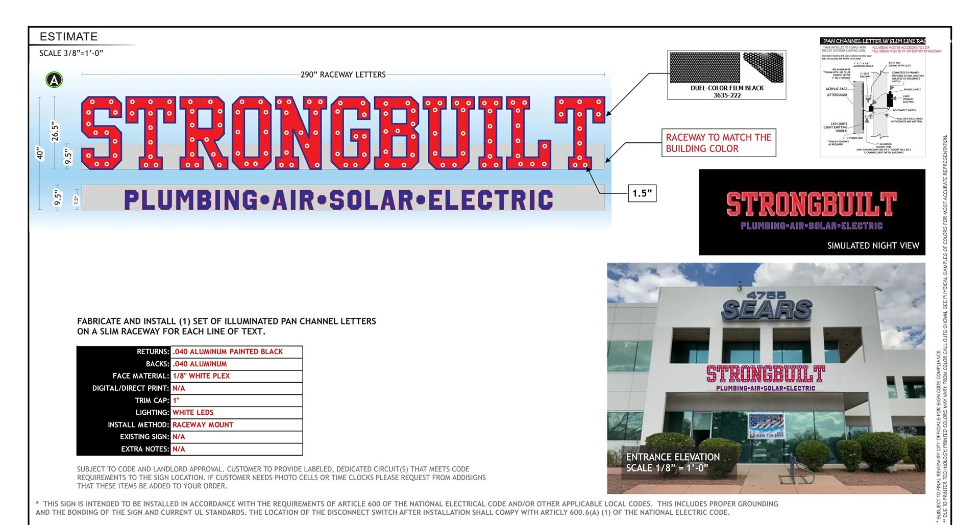 Strongbuilt CorelDraw, 2023Work Order for Addisigns. Created vector artwork for new signage and a banner for a local Strongbuilt.