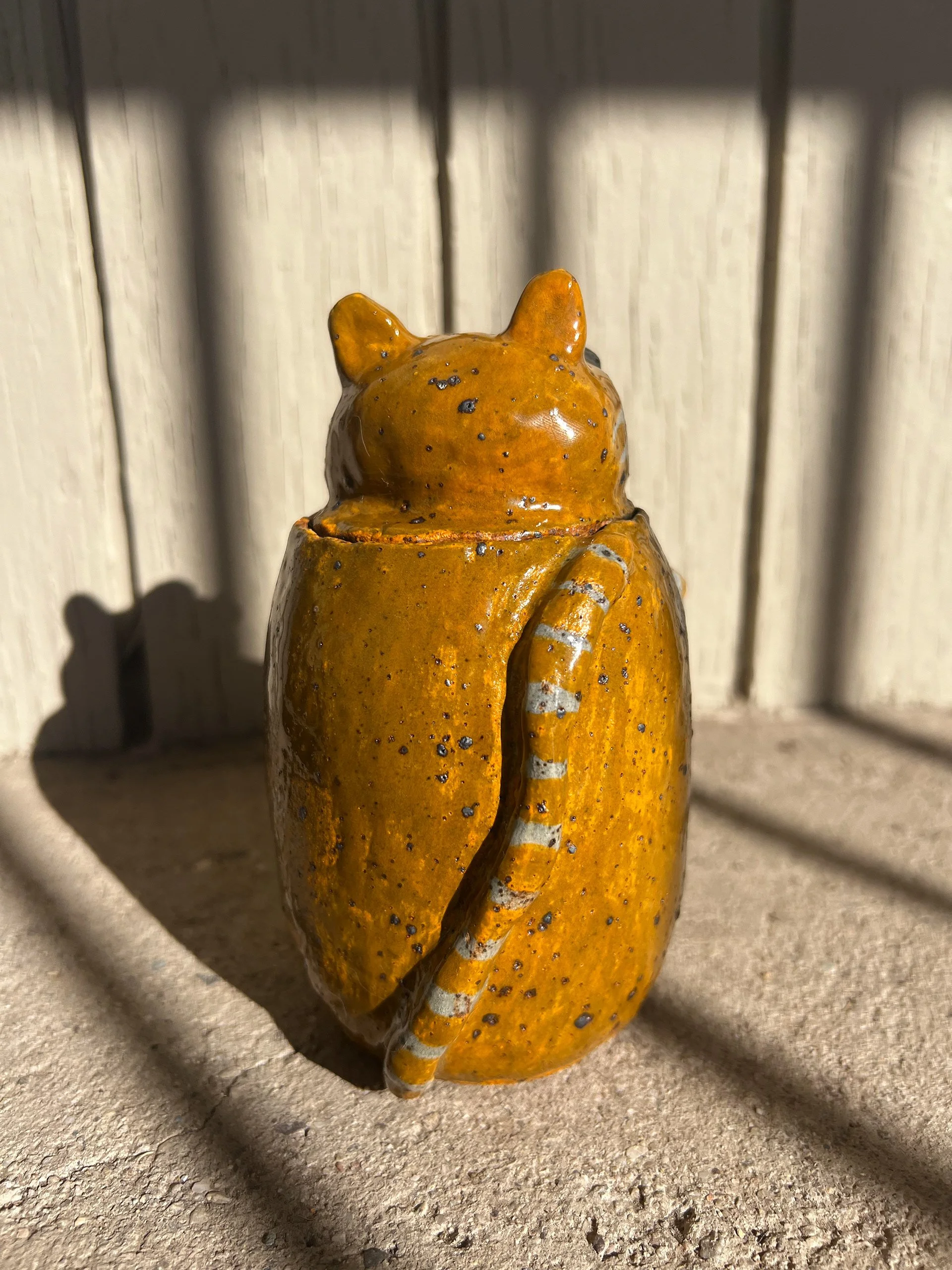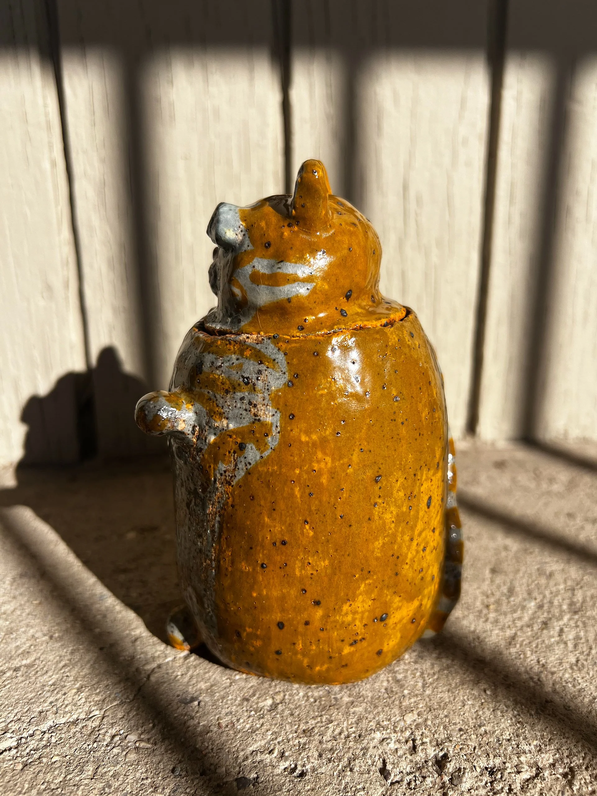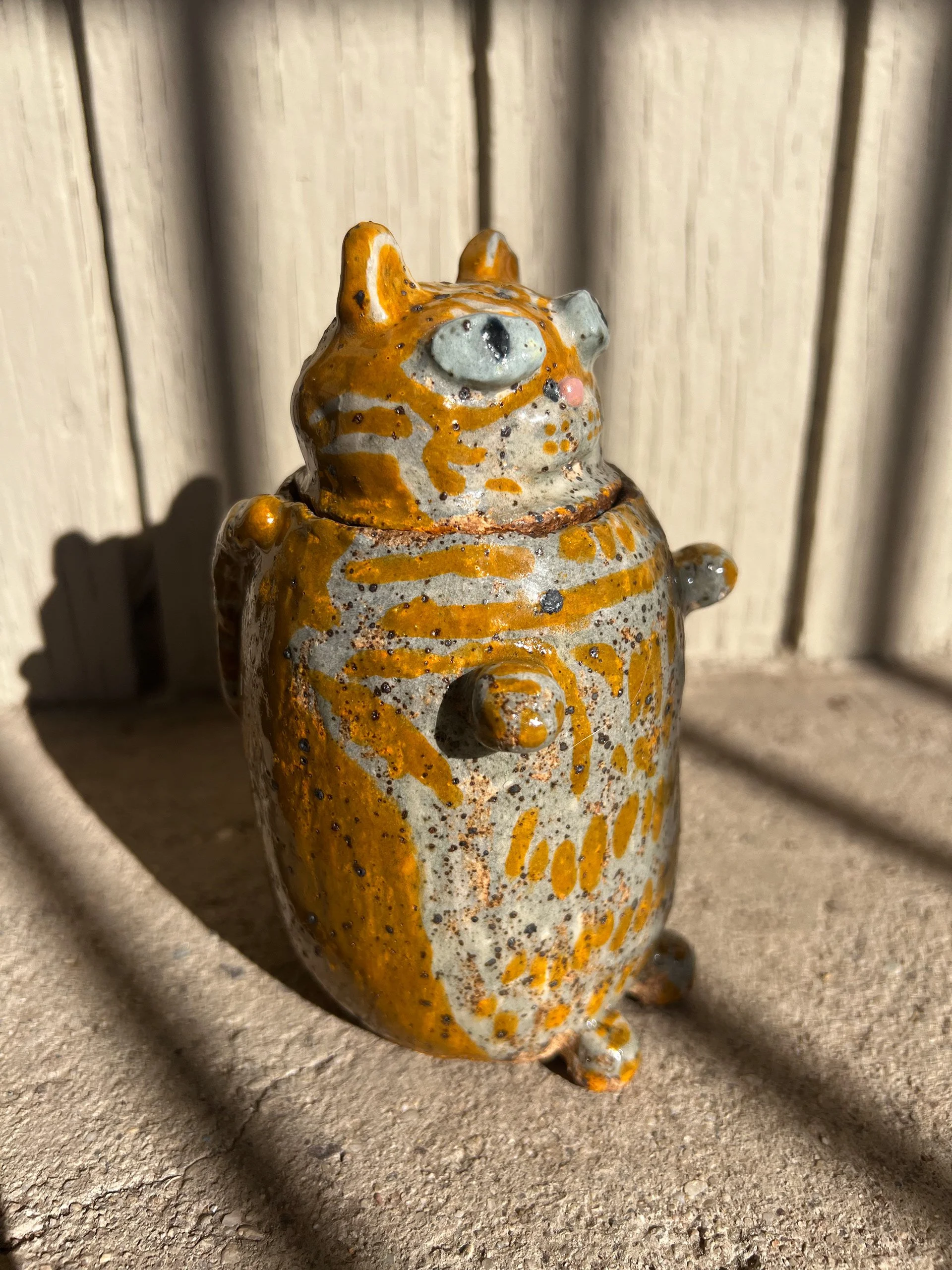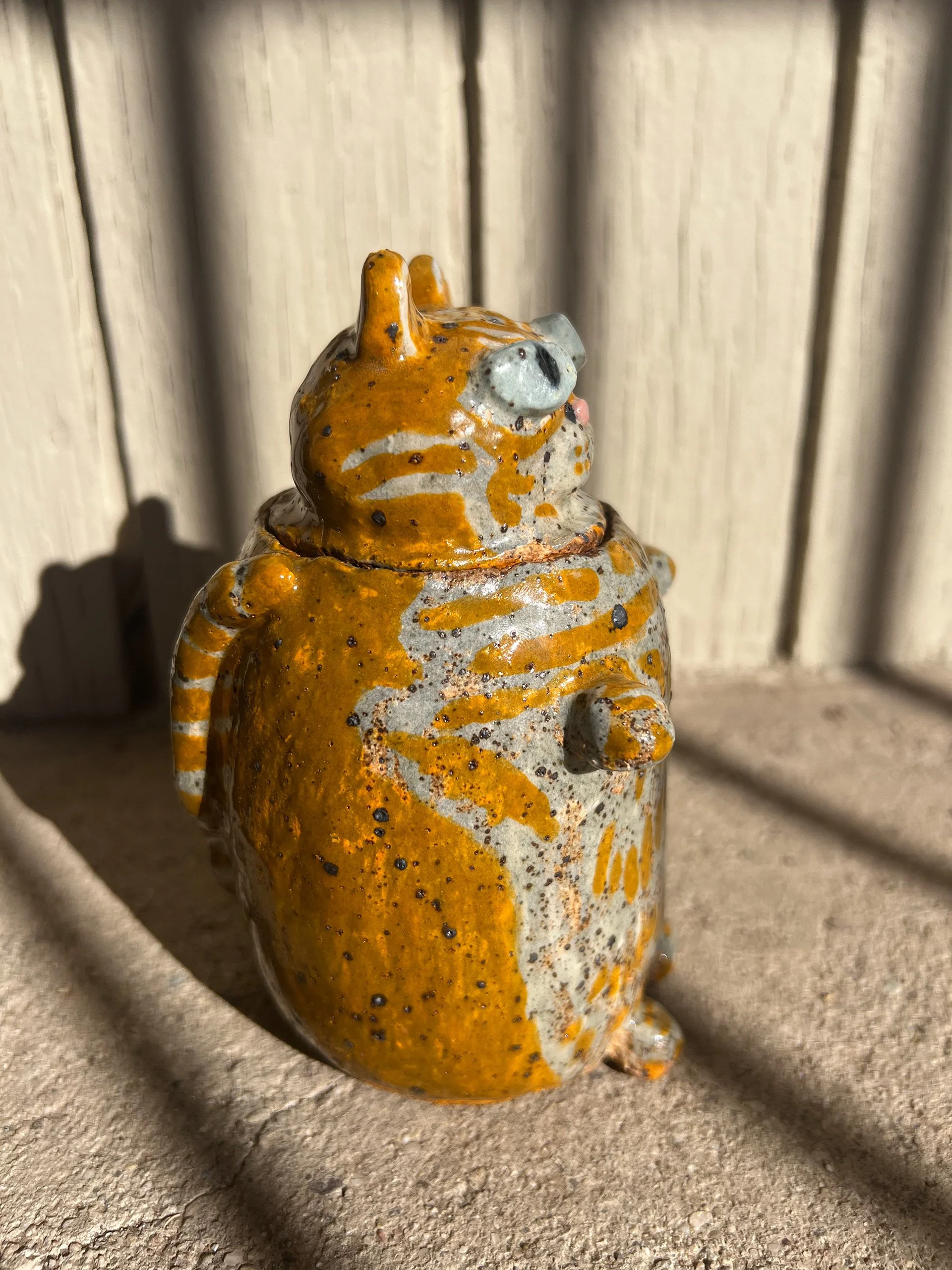 Mosi Jar Glazed Ceramic (”5.5x2.75”x3.6”), 2025Jar with removeable head inspired by me and my partner’s cat, Mosi.
